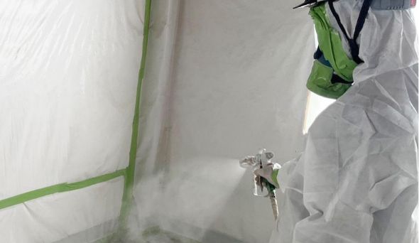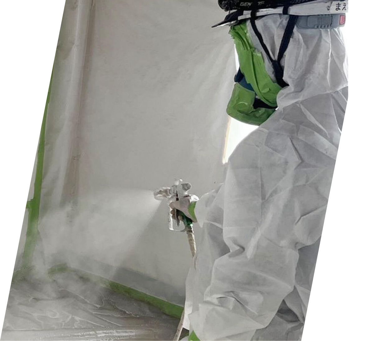 封じ込め工法は、建物内に存在するアスベストを溶剤で固定し、飛散を防ぐ方法です。この方法では溶剤を吹きかけて固めるだけで済むため、作業時間が短く、除去に比べて費用も低く抑えられます。