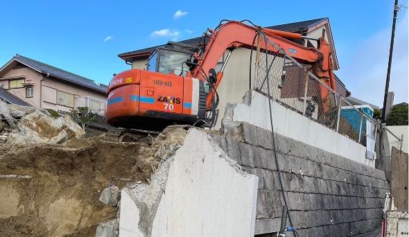建物解体工事では、戸建て住宅からビルまで、建物の種類を問わず全面的に解体し撤去します。建物の上物だけでなく、基礎部分も解体し、杭が入っている場合は杭まで撤去します。重機が使用できる部分は効率的に重機を活用し、細かく難しい部分は手作業で丁寧に解体を進めます。工事はまず、ガス・水道・電気などのライフラインを確実に切り離すことから始まり、足場を組んで安全に解体作業を進行します。完工後は整地を行い、土地を次の利用に備えた状態で引き渡します。サントでは、経験豊富なスタッフが安全と品質を最優先に、周囲の環境にも配慮しながら、丁寧に解体工事を進めていきます。